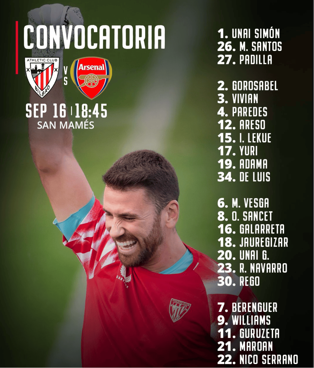 9月17日00:45,#欧冠 联赛第一轮,西甲第四的#毕尔巴鄂竞技 主场迎战英超第二的#阿森纳。